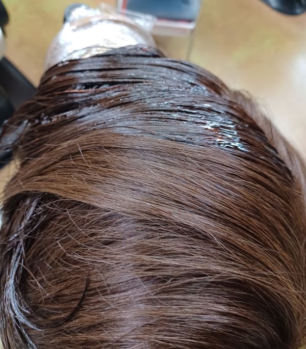 染める前に、保湿剤的なものを、ランダムに塗布します。